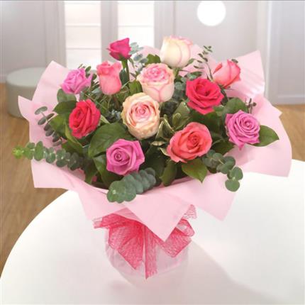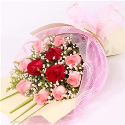 老挝鲜花-混合玫瑰12枝
