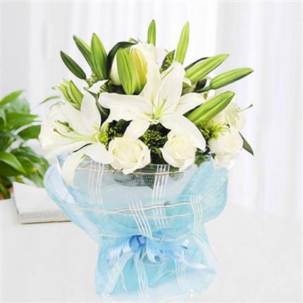 老挝鲜花-白玫瑰+白百合